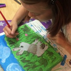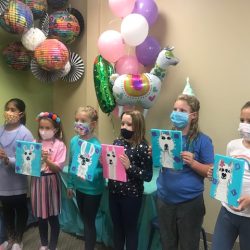 Painting Party: Best for ages 6 and up. Instructors will lead participants through a step by step acrylic or watercolor painting. No two works will look the same! Paint your favorite animal, vehicle, mythical creature or cartoon character! This type of party does require all guests to arrive at the party at the same time. This would be for a more mature or serious artist, as it does require several steps of instructions and less socializing time. End projects tend to be high quality keepsakes.