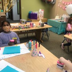 Pre-School Craft Party: Geared for ages 3-5; Guests will rotate at their leisure between a variety of craft stations, a playroom or outside playground weather permitting. We ask that all guests of this age have a parent present for additional support, however the parents must participate with their child. Past party themes include: rainbows, butterflies, mermaids and pirates, painting, dinosaurs, vehicles, princesses and knights, snakes and reptiles, pets, zoo animals and many more! Craft stations may include foam 3D animals, wands, swords or crowns, crayon rubbing and tempera paint creations, collage, glitter glue activities, animal faces, puppets, watercolor, wooden animals or just about any craft idea to fit your theme!