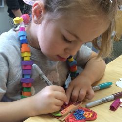If your child enjoys making things with their hands, this is the perfect way to celebrate their birthday! There are four different options for parties: a traditional Monart Drawing or Painting Party, a Craft Party, Plaster Pouring Party or a Lego Party. Each type of party can be for any age above three years. The cost for a party is $275 for 12 attendees including the Birthday person; for any additional guests, please budget $5 per person. These fun two hour long parties can be scheduled on Fridays after school or Saturday afternoons. Monart will provide all the needed art or Lego materials and 1-2 instructors plus helpers, depending on the age and size of the party. The art or Lego part of the party is approximately 90 minutes, with the remaining 30 minutes for refreshments and presents. Please bring three plastic table clothes for the refreshment tables, treats (we suggest cookies for easy cleanup) and bottled water or juice. Many parents do not send home a “treat bag” with guests because each guest will make several pieces of art to take home (one or two art/craft pieces will be created at a Lego party). We also have a large playground outside that guests are welcome to use during or after the scheduled party. In fact, if weather permits we are happy to have the party “spill over” into the playground or have refreshments outside. We decorate for each party to align with the theme on the bulletin boards in each classroom. You are welcome to come 15 minutes prior to party time to do additional decorating If you need additional time beyond the 15 minutes the rate is $25 per each 15 minute incremnets.